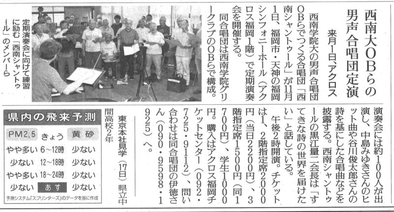 西日本新聞・讀賣新聞に、定期演奏会の記事が掲載されました