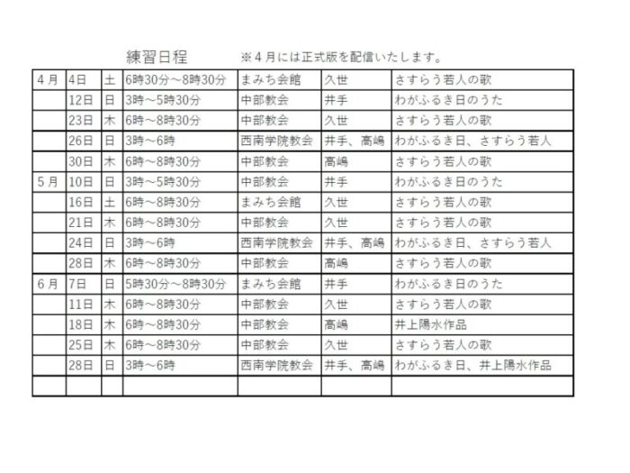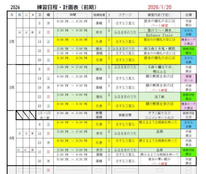 西南シャントゥールの通常の練習日程